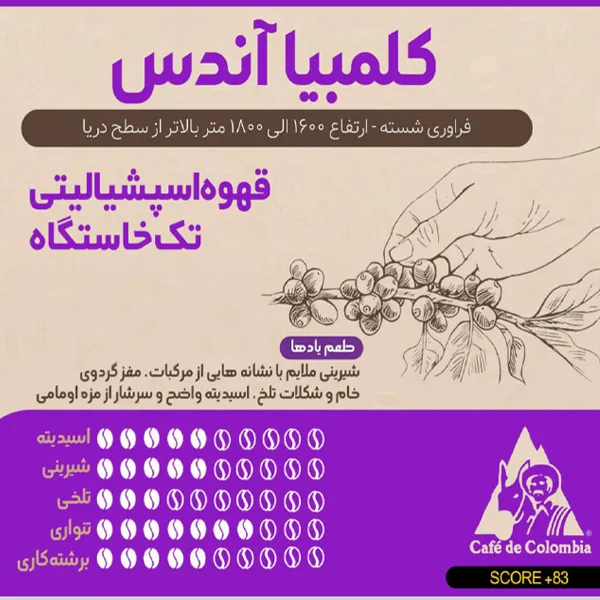 قهوه تخصصی تک خاستگاه کلمبیا آندس (Colombia Andes Single Origin Specialty coffee) یکی از معروف‌ترین و بهترین مناطق کشت قهوه در جهان است. بخشی عمده قهوه‌های کلمبیا از نوع عربیکا (Arabica) هستند که به خاطر طعم و کیفیت برترشان شناخته شده‌اند.